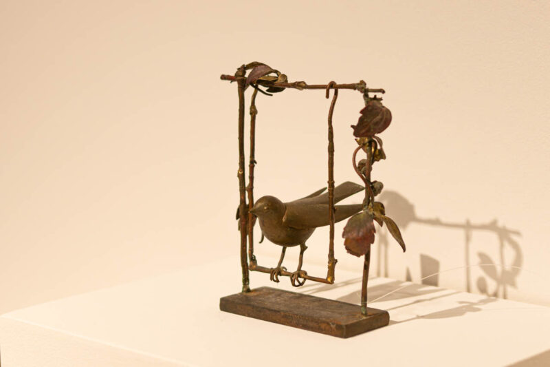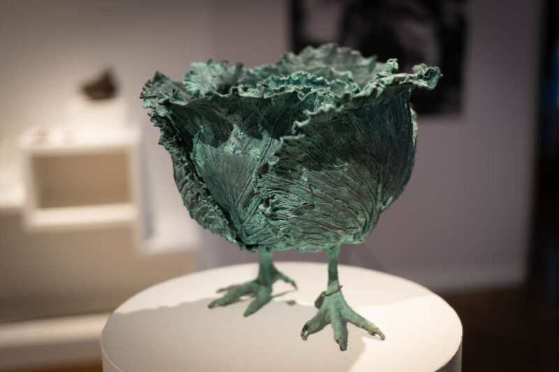 クロード・ラランヌによる《Pomme Bouche》や《Petit oiseau sur la balançoire》、青銅のキャベツに脚が生えた《Choupette》といった作品は、彫刻とオブジェと日常用品の境界を軽やかに飛び越えていく。葉脈や羽根の質感を細部まで写し取ったガルヴァノプラスティの技術はきわめて精緻だが、出来上がったかたちはどこかユーモラスで、思わず微笑んでしまう。ここにもまた、「合理と装飾」の緊張関係を抱えたモダンの一つの答えが見える。