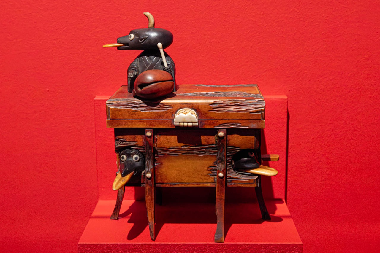 江戸時代の造形物に見られるユーモアと異形の感覚は、マンガにおけるキャラクター表現の重要な源泉の一つである。展示されている立体作品は、誇張された顔貌や不自然な身体の構造によって、見る者に驚きと親しみを同時に与える。こうした造形は、恐怖や怪異を笑いへと転化する日本独自の視覚文化を体現している。