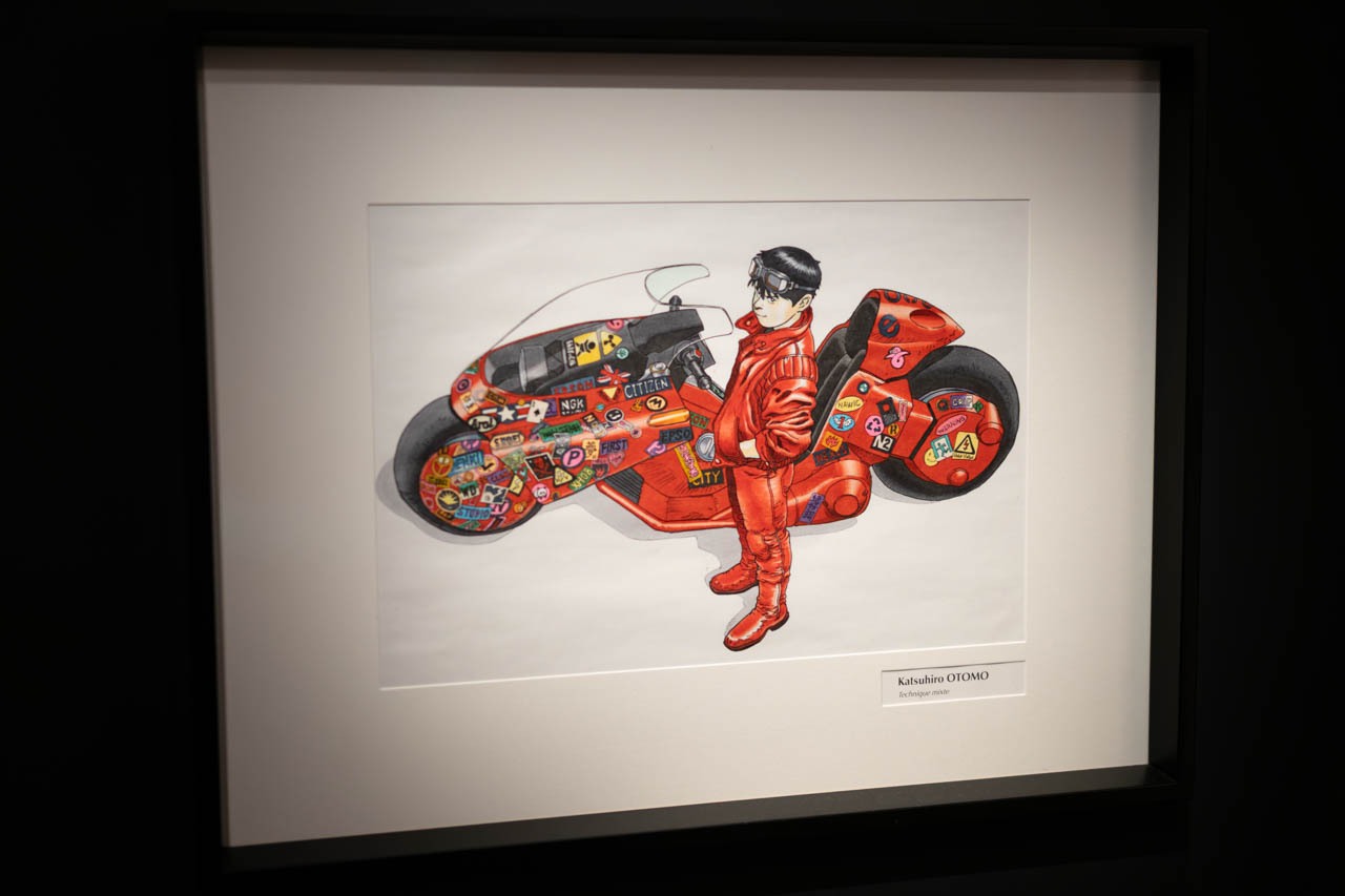 赤いライダースーツに身を包んだ金田正太郎と、無数のステッカーで覆われたバイクは、『AKIRA』における視覚的アイコンとして、1980年代以降のマンガ表現を象徴する存在である。精密なメカ描写と大胆な色面処理は、スピードと暴力、都市の過剰なエネルギーを一体化させ、物語世界を一枚のイメージとして定着させた。 マンガのコマを越えて独立した図像として成立するこの構図は、日本のマンガがサブカルチャーから現代視覚文化へと拡張していく過程を示しており、観客の関心を強く引きつけていた。