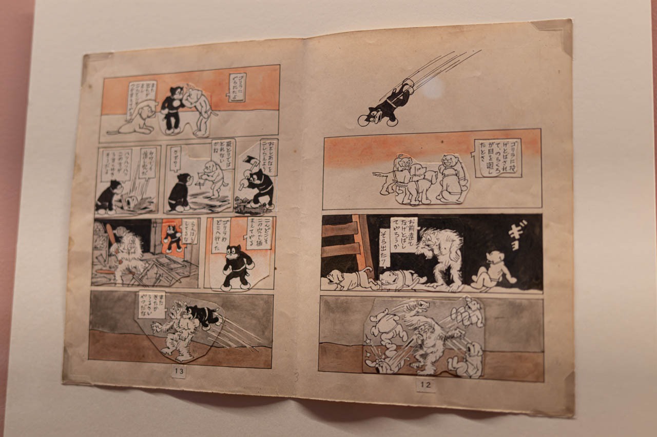 展示後半では、マンガが少年文化として確立し、アニメーションや商業出版を通じて世界へと拡張していく過程が描かれる。ドラゴンボールに見られる神話的構造や冒険譚は、中国古典や東アジア文化圏の物語とも響き合い、国境を越えた普遍性を獲得していく。