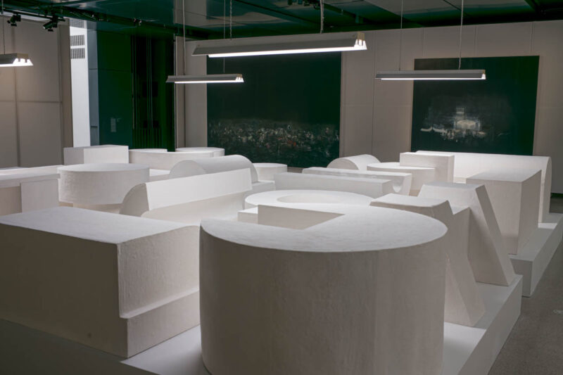 下層階では、アブサロン(Absalon)の白い構築体《Propositions d’habitations》(1990年)が理想の住居の模型として並ぶ。