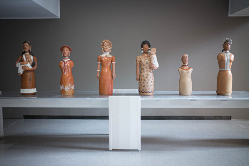 イザベル・メンデス・ダ・クーニャ(Izabel Mendès da Cunha)の陶像群は、祈る母や娘の姿を土の肌に刻み、女性たちの記憶を永遠の物語へと昇華させる。