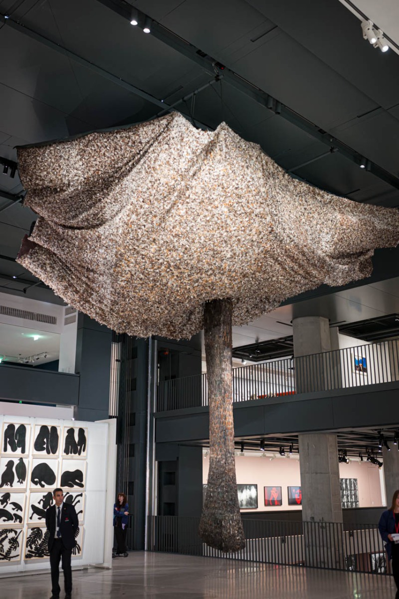 それは単なる回顧ではなく、「人間と自然」「科学と詩」「時間と記憶」を結び直す壮大な試みである。吹き抜けの中心には、ブラジルのソランジュ・ペソア(Solange Pessoa)による巨大な吊り作品《Miracéus》が浮かぶ。