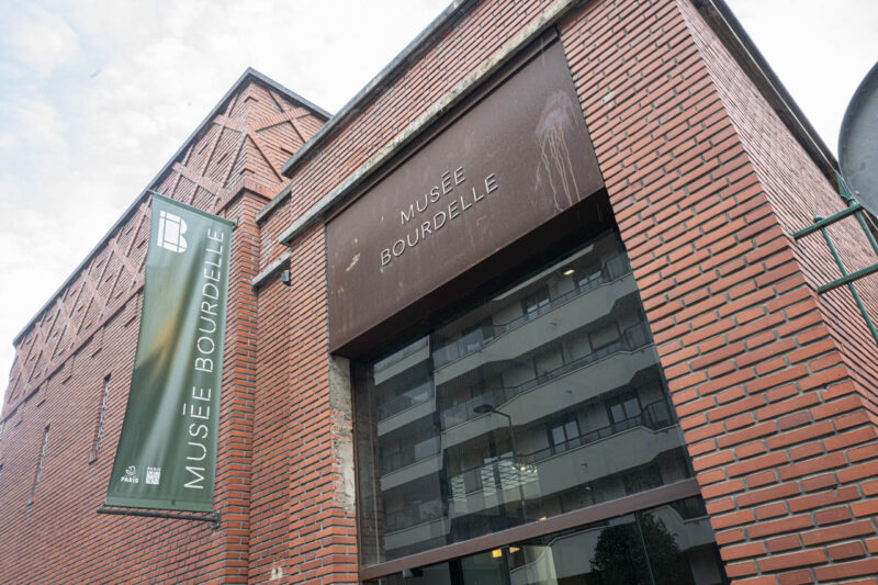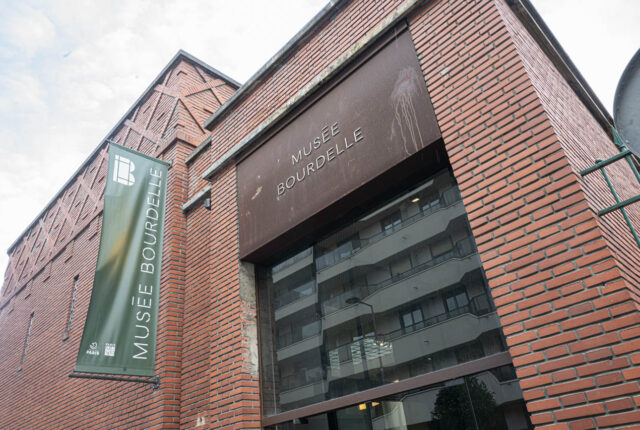 ブールデル美術館のエントランス。モンパルナス駅からほど近い15区の路地に位置し、喧騒から切り離された静寂が漂う。赤レンガのファサードは、19世紀末から芸術家が集ったこの地の記憶を留める一方、ガラス面には現代の集合住宅が映り込む。ブールデルが生涯を過ごしたアトリエを核に、1961年のアンリ・ゴートリュシュ、1992年のクリスチャン・ド・ポルザンパルクによる増築を経て、異なる時代の建築が積層する空間となっている。