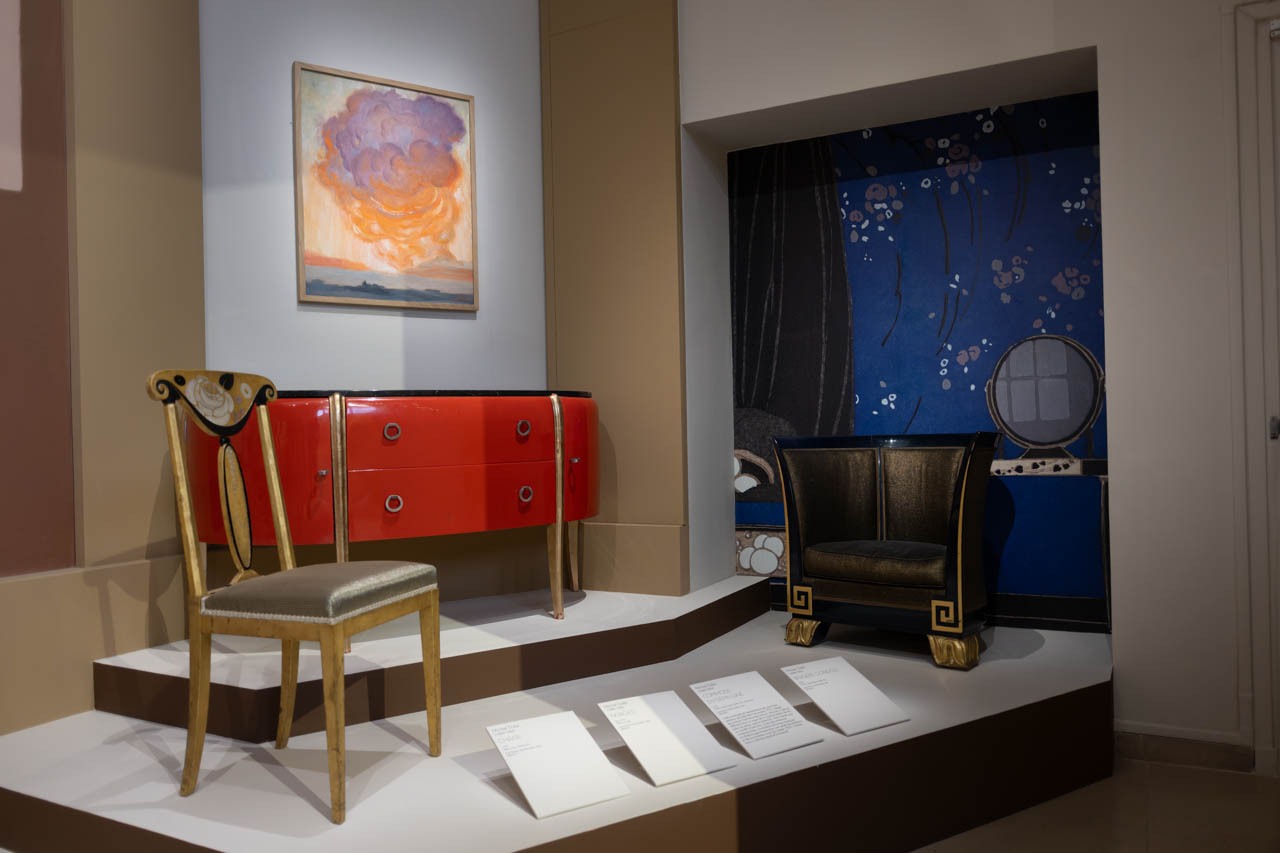 大ホールの奥に設けられた、建築家・装飾家ミシェル・デュフェ(1888-1985)の展示コーナー。 彼はブールデルの娘ロディアの夫であり、ブールデル美術館の初代館長として、アトリエの保存と増築に尽力した人物である。 ここには彼自身がデザインした家具が並ぶ。中央の赤い半円形のコモード(1919年)は、オーク材に漆と金箔を施したもので、日本美術の影響とアール・デコの洗練が融合している。彼は豪華客船「ノルマンディー号」の内装も手掛けた「スタイル・パケボ(客船様式)」の旗手でもあった。 ブールデルの「重厚な石」の世界とは対照的な、デュフェの「軽やかで滑らかなモダニズム」。異なる二つの才能が、家族という絆でこの場所に共存している。