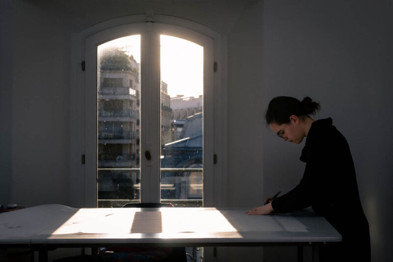 クラシックな建造物の内部には、極めて現代的かつ静謐なクリエイション空間が広がり、そこで働くクリエイターは、分業ではなく“知の共有”を基盤に、ひとつの服を完成へと導いている。
