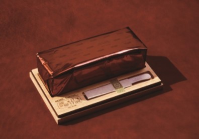 GENDYの南青山店では、まるでお気に入りのシガーを想わせるシックな装いの「ザ・プレミアムビターキャラメルバー」に熨斗を掛け贈ることが可能だ。