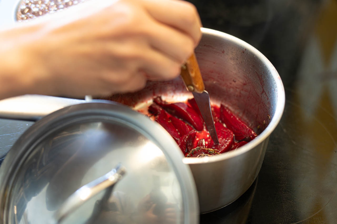 調理器具の選定から火入れの細部、器との相性までを確認しながら、家庭でも無理なく再現できるように丁寧に構成されていく。レッスンは午前中に始まり、完成した料理はワインとのマリアージュとともにランチとしていただくスタイル。知らない者同士で集まった生徒たちが、最後には一つのテーブルを囲み、自然と会話と笑顔が交わされる。