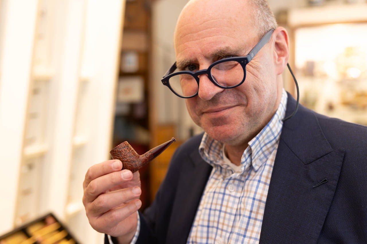 カルモン・ヘナー氏が手にするのは、マウスピースを極端に短く設計したコンパクトモデル。ポケットにすっと収まるサイズ感で、外出先でも気軽に愉しめる実用性を備えながら、ダンヒルらしい精緻な造形美を保っている。
