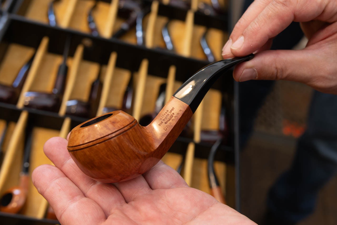 会場にはダンヒル本社からディレクターの Kalmon Hener 氏が来訪し、さらにフランス正規代理店の Denis Blanc 氏も同席。来場者はブランドの世界観に直に触れながら、数百本に及ぶ貴重なパイプを手に取ることができた。