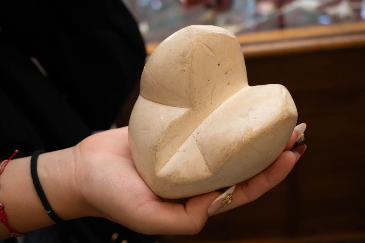 手に収まる大きさの海泡石の原塊。このサイズでも驚くほど軽く、その軽さと吸湿性こそがパイプ素材として重宝される理由だ。白く柔らかな質感は加工性にも優れ、独特の喫味をもたらす。
