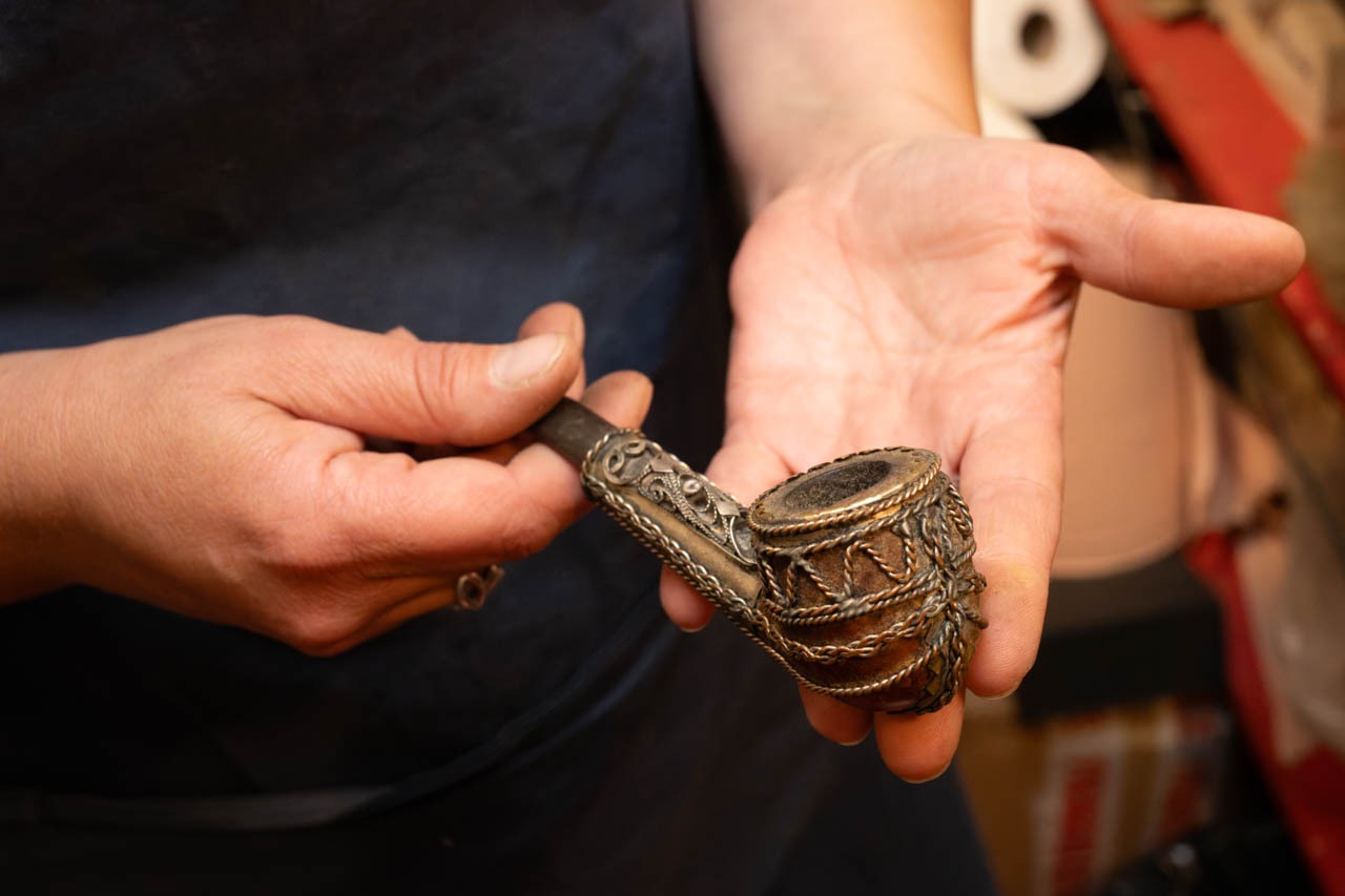 Marie-Aurélieは、パイプの修理・洗浄・吸い口の交換も行う。「壊れたら終わり」ではなく、「壊れても直せる」のがパイプの世界だ。たとえば、1989年製のDunhillや、1960年代の“黄金期”に製造された分解式モデルの修復もこなす。