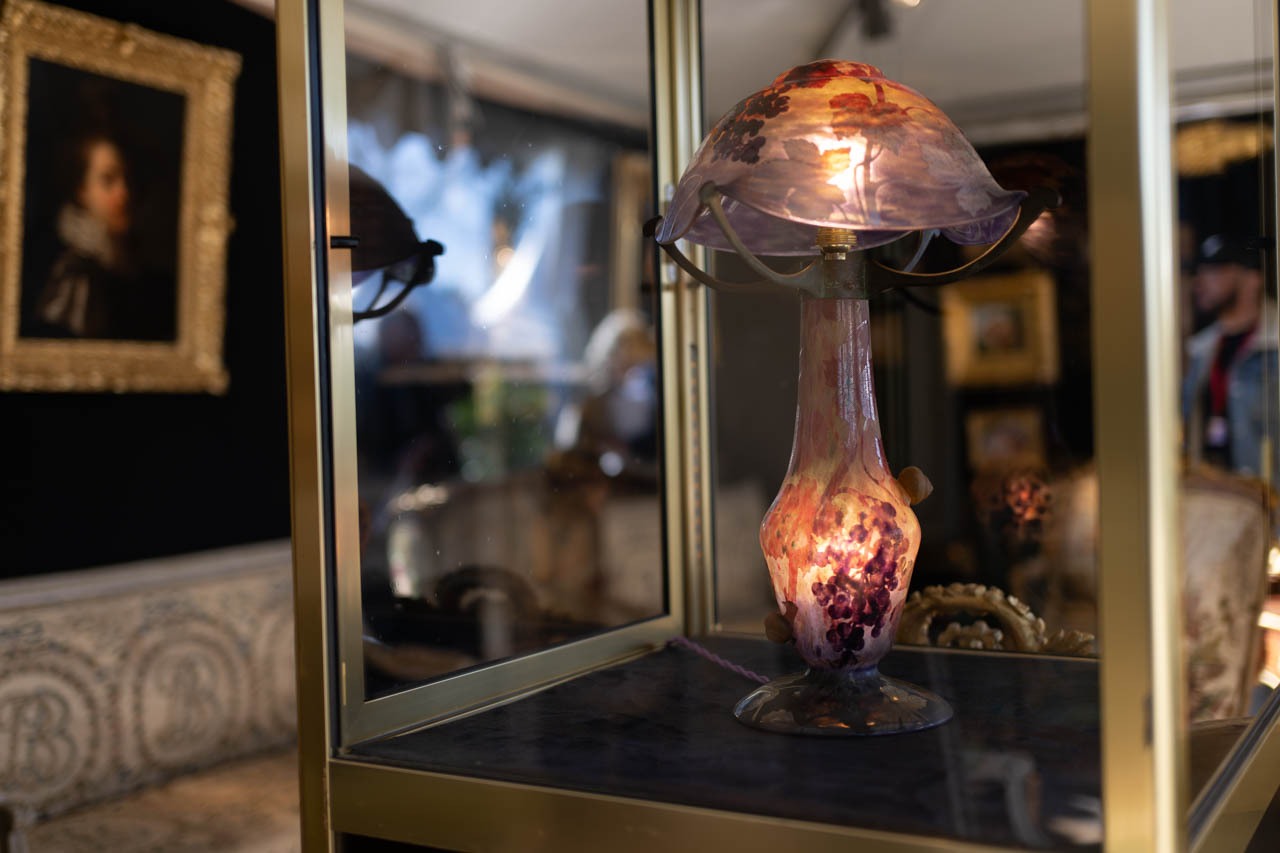 そのブースの中央には、ドーム(Daum)の傑作が堂々と展示されている。繊細なガラス細工と芸術的な色彩が際立ち、アール・ヌーヴォーの美意識を象徴する逸品だ。