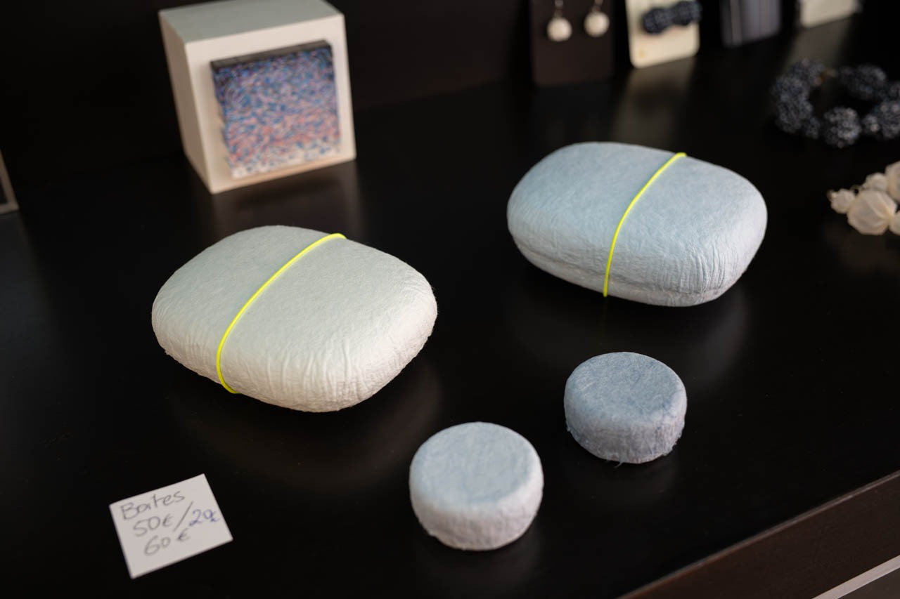 店内に入ると、紙に魅せられた作家たちによる作品や工芸品が整然と並ぶ。それぞれの紙が持つ質感や色、かたちの違いが静かに語りかけるように配置されており、紙という素材への視線の深さと、オーナーの確かな審美眼が感じられる。