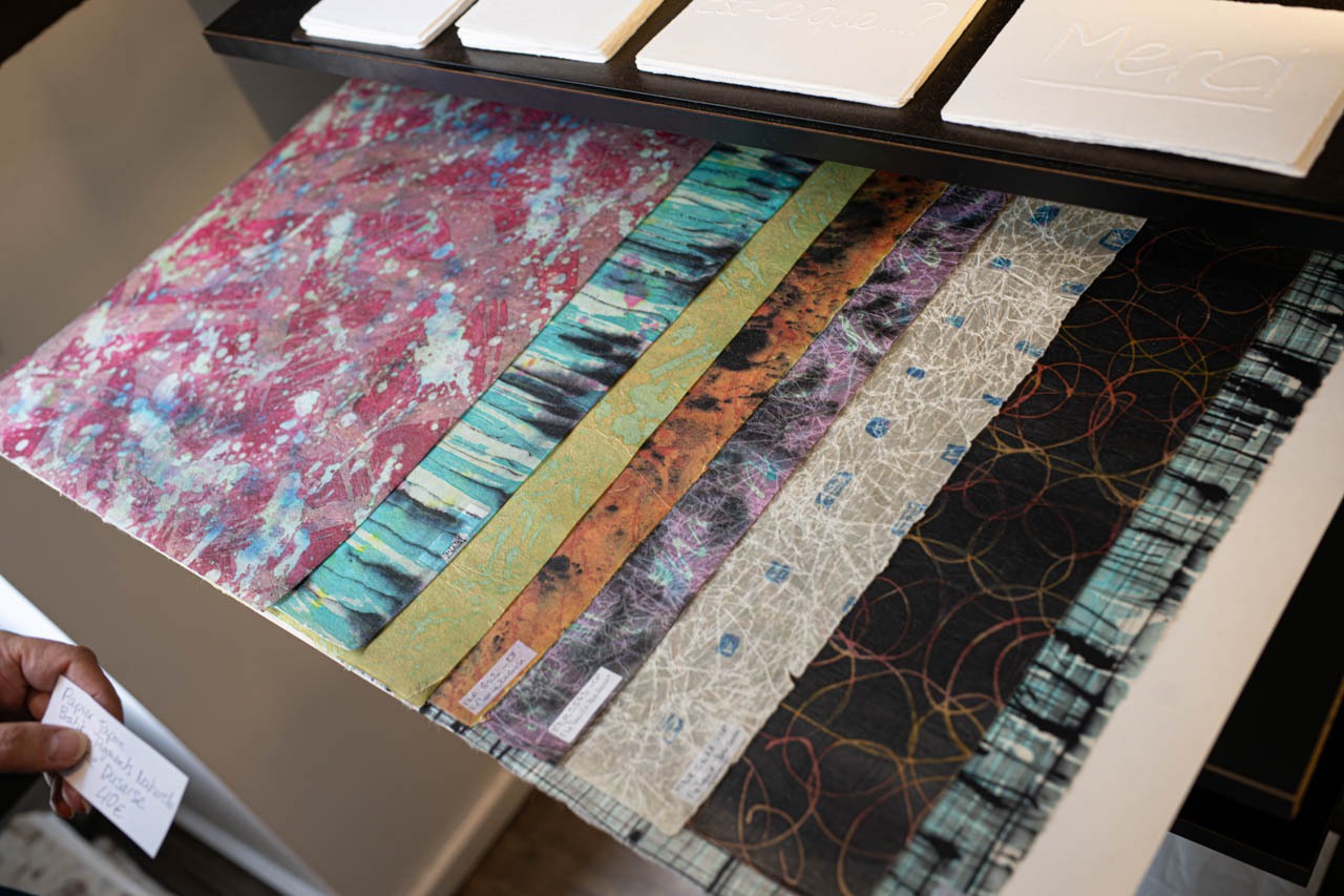 Atelier Calligrane を母親から引き継いだヴァネッサさん。紙の文化が日常に息づく日本を深く敬愛しており、「来年のゴールデンウィークにまた日本に行く予定なの。もう楽しみで仕方がないのよ」と、嬉しそうに語ってくれた。