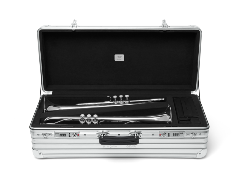 なかでも同じドイツの弦楽器アクセサリーで有名なGEWAとコラボしたバイオリンケースは、非常に人気を博し大成功を収めた。その成功を基に、今回GEWAとのコラボレーション第二弾として「RIMOWA×GEWA トランペットケース」が特別限定モデルとして発売された。