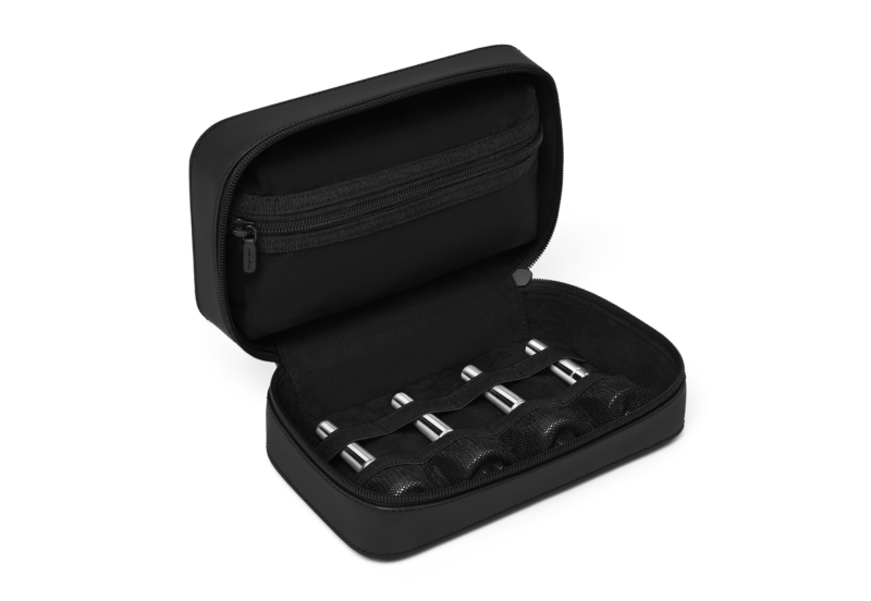 最大4つのマウスピースや小さなアクセサリーを収納できるポータブルレザーポーチと、楽器を保護するための2つのダストバッグも付属している。