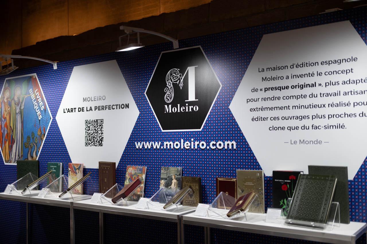 スペインの出版社 M. Moleiro。中世彩飾写本の精巧な復刻を「presque original(ほぼ原本)」と定義し、羊皮紙の肌理から金属箔の光沢、手綴じまで職人技で再現する。ファクシミリを超え、オリジナルの触感と存在感に迫る“本の工芸”。