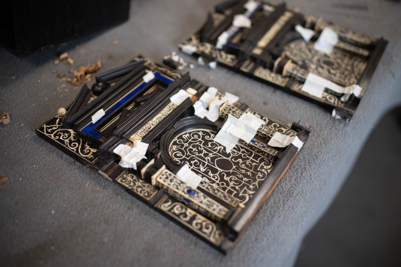 対象は17-18世紀の家具に留まらない。トゥールで製造された1919年製の木製ボディを持つ自動車、ロラン・ピランの修復。あるいは、シャンボール城に眠る5台の馬車のクリーニング。 木材が使われている限り、それが家具であれ乗り物であれ、ジュリアンの守備範囲だ