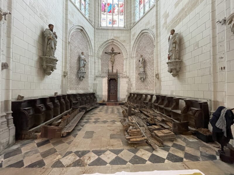 現在、アトリエでは15世紀の聖歌隊席(stalles)の修復という大仕事が進んでいる。4メートルの巨大なブロック、3人の職人が費やす1000時間もの工数。 そこには、かつてジュリアンがそうであったように、バカロレアを経てこの世界に入り、歴史と向き合うことに情熱を注ぐ若き職人の姿もある。