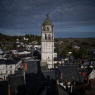 収穫も終わり、すっかり枝葉の落ちたブドウ畑ではあるが、しばし散策してみる。今年の収穫はどうだったのか、どんなワインになって、いつ頃飲めるのだろうか――などと楽しい妄想に耽りながら、まだ緑色を残した下草を踏んで歩く。ふと見上げると、斜面の上にはモダンなワイナリーの建物が。樹々の梢に縁取られたフラットルーフと、空を写し込むガラスのファサードによって、周囲の自然に溶け込むような外観だ。