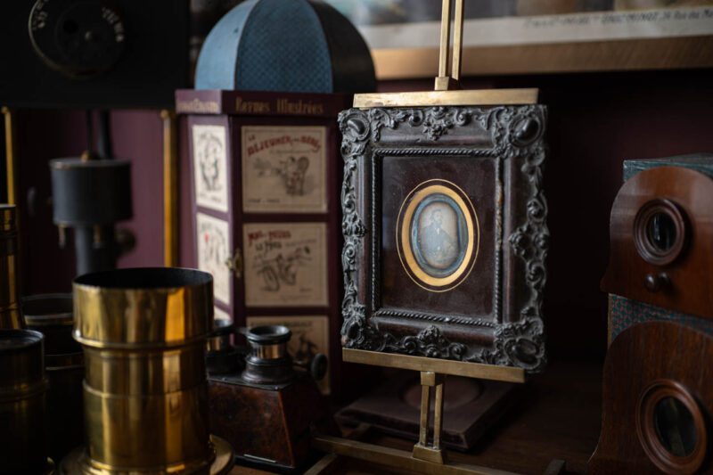 店主のセバスチャン・ルマニェンは、もともと報道写真家としてキャリアをスタートし、その後、写真と映像の歴史に魅了され収集家・研究者として独自の道を歩んできた。世界中から集められた写真機材の数々は、どれも彼自身の目で選ばれ、修復され、分類されたものばかりである。現在は通りを挟んで2店舗体制。さらに2025年秋には3店舗目のオープンも控えている。