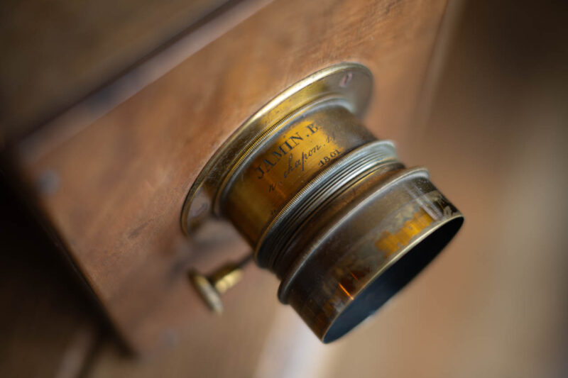 また、写真がフランスで発明されたという事実は決して偶然ではない。1839年のダゲレオタイプ発表以降、フランス──特にパリ──は写真技術の実験場であり、創造の中心だった。レンズメーカーからカメラ製作所まで、数多くの職人とメーカーがしのぎを削り、ジャン・バティスト・ジャマンやエルマジスといった名匠の名がレンズ銘板に刻まれる時代となった。Antiq Photoには、そうしたフランス初期写真文化の証人ともいえる実物が多数並び、単なる骨董ではなく“生きた文化財”としての存在感を放っている。