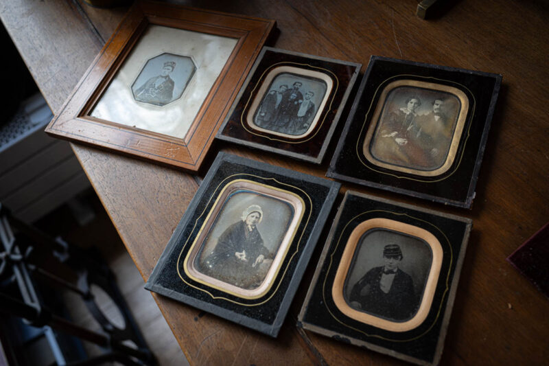 複製不可能だったダゲレオタイプだからこそ、その一枚に込められた存在感は圧倒的だ。繊細な細工が施された額装もまた、唯一無二の肖像にふさわしい舞台装置。Antiq Photoでは、カメラだけでなく、こうした“写された記憶”そのものも扱っている。