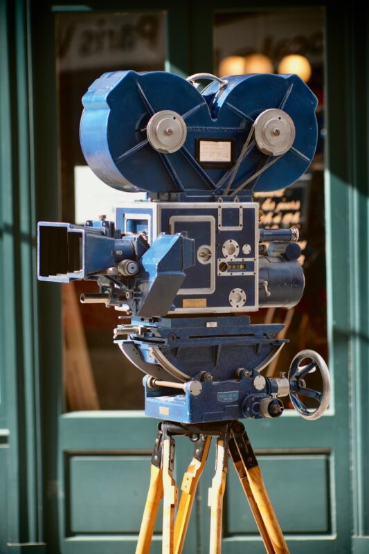写っているのは、テクニカラー3ストリップ・カメラ(Technicolor Three-Strip Camera)。1930年代初頭に登場し、世界で初めて本格的なカラー映画撮影を可能にしたカメラとして知られる。カメラ内部で分光ミラーによりRGBの光を3本の35mmモノクロフィルムに分けて同時に記録する仕組みで、極めて高い解像感と鮮やかな色彩を実現した。映画『オズの魔法使』や『風と共に去りぬ』など、ハリウッド黄金期の名作の多くがこの方式で撮影された。巨大な筐体と独特のブルーの塗装が特徴で、運用には熟練のオペレーターと専用の機材チームが必要とされた。技術的にも歴史的にも、カラー映画の原点にして最高峰のフィルムカメラのひとつである。※写真提供Antiq Photo