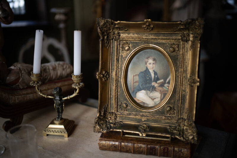 優美な楕円のフレームに収められた、水彩による《シャルル・シャルパンティエの肖像》(1830年頃)。フランスの画家ジャック・ドニ・シャルパンティエの息子シャルルを、姉セレストが結婚前に描いた一枚。紙の裏には、その物語が今もそっと記されている。