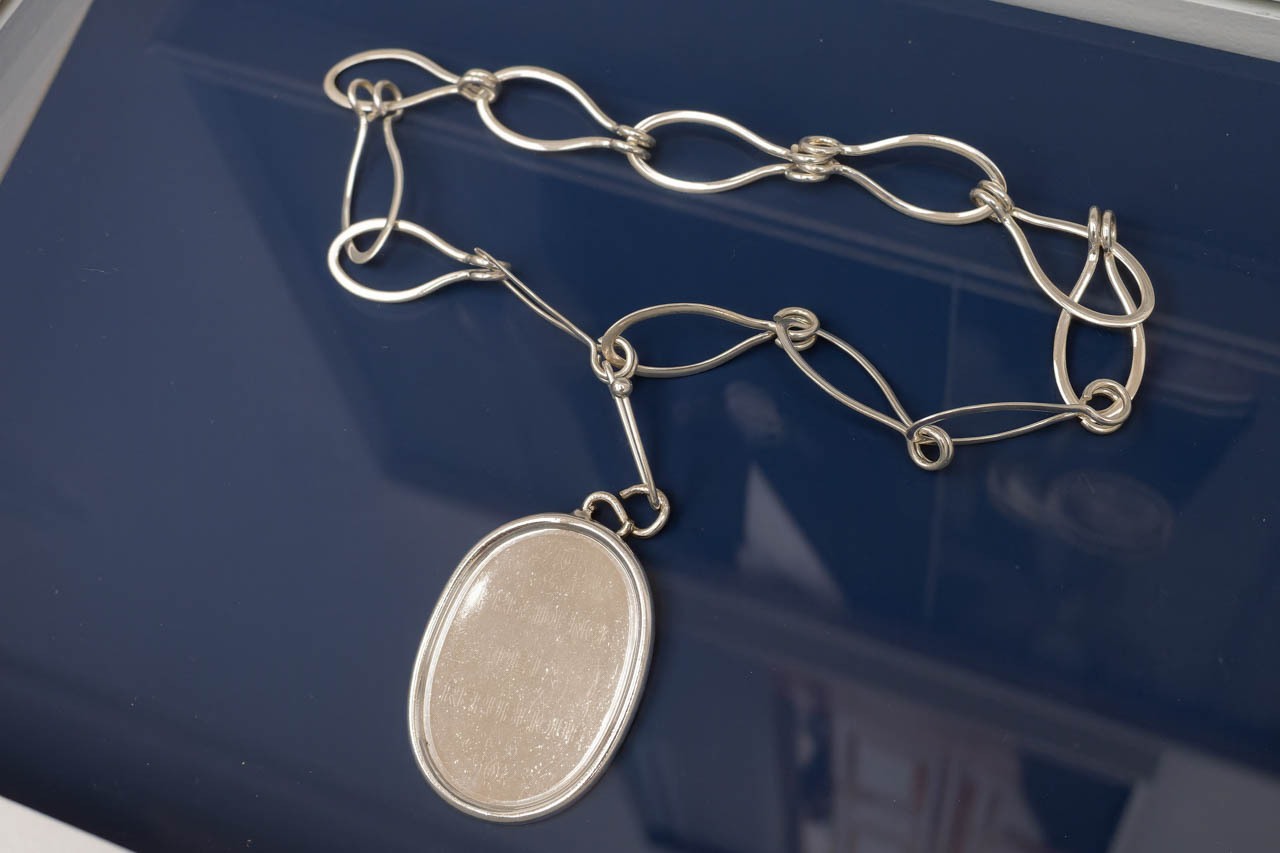 大統領の一日を円滑に進行させる役目を担うのが「庁舎係(huissiers à chaîne)」と呼ばれる職員たちである。彼らは会議の設営、来賓の案内、大統領の到着の告知などを担い、共和国の日常運営を支える裏方でもある。その存在を示すのがこの銀製のチェーンとメダル。かつては物理的に扉を施錠するために使われていたという歴史を持ち、現在では儀礼的な象徴として肩から下げられている。