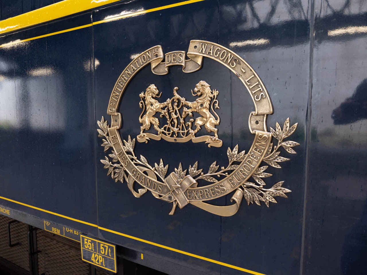 CIWL(Compagnie Internationale des Wagons-Lits)の紋章。1883年にパリ東駅から初めて走ったオリエント急行以来、このエンブレムは豪華列車の象徴として世界に知られるようになった。