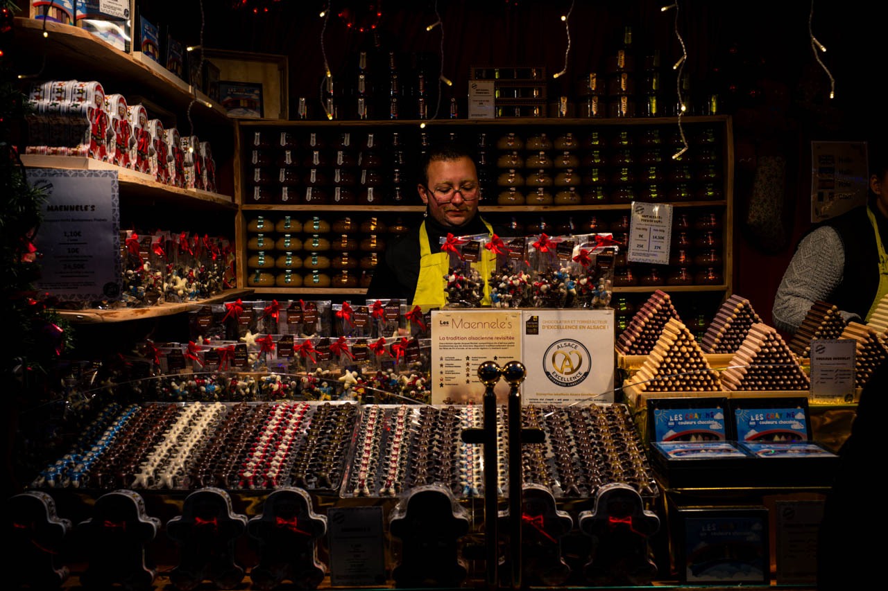 甘い菓子、焼かれる肉、立ちのぼるヴァン・ショーの湯気、ガラスに閉じ込められた小さな雪景色、切り開かれたバゲットの上で溶けるムンスター、そして六世紀を超えて灯り続けるメゾン・カメルツェルの窓──それらはすべて、写真とキャプションのなかに、すでに十分な密度で息づいている。