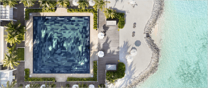 モルディブの首都マレへ空路で約9時間。さらにそこから水上飛行機で150km約40分環礁を渡っていく。美しい島々を眺めながら移動していく、この長旅こそが日常を忘れ非日常へと足を踏み入れるための欠かせない旅路だ。そして黄金の砂に足をおろした瞬間から、楽園の光と静寂の空気に包まれることだろう。