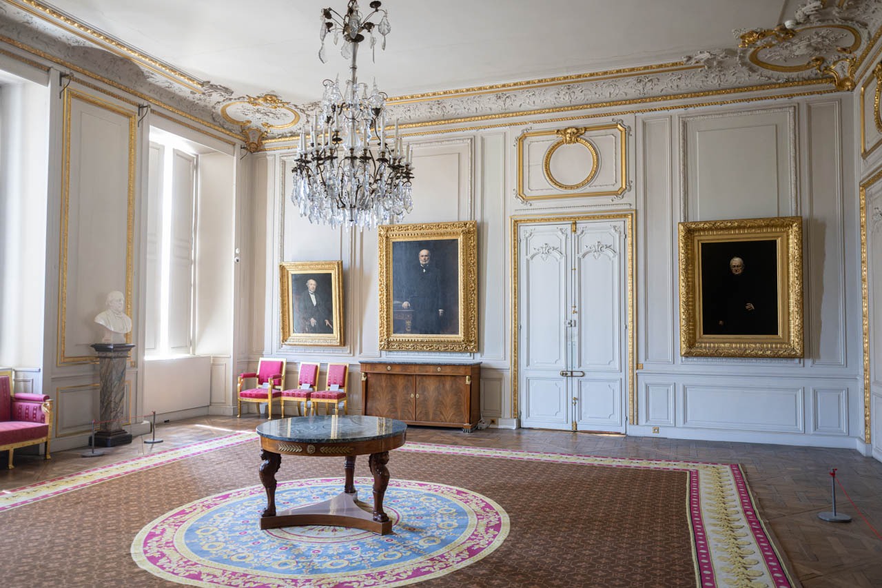 議長アパルトマンの内部は、赤と金を基調にした重厚な装飾が施され、共和国時代の大統領たちの肖像画が整然と並ぶ。そこにはフランス国家の「知」と「威厳」が凝縮されており、まさにこの宮殿が王政の象徴から共和政の拠点へと転換した歴史の証左であるといえる。