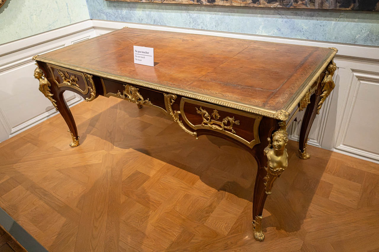 第一次世界大戦の終結を記したヴェルサイユ条約は、1919年6月28日、王の宮殿であるヴェルサイユ宮殿で調印された。調印に用いられたのがこの机である。18世紀前半に制作されたロココ様式の優美なデスクが、近代史の大きな転換点に再びその表舞台に据えられた。