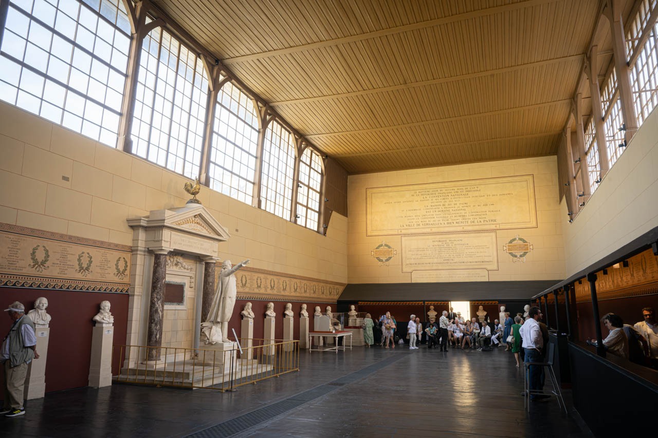さらに、ヴェルサイユ宮殿を出て徒歩5分の場所にある「ジュ・ド・ポームの間(Salle du Jeu de Paume)」も、共和政の原点を伝える重要な場所である。1789年6月20日、三部会における第三身分の議員たちが国王の干渉を退け、ここで憲法制定まで解散しないと誓った「球戯場の誓い(Le Serment du Jeu de Paume)」がなされた。この空間には、ジャン=シルヴァン・バイイ像と誓約参加者の胸像、そして壁面を覆う歴史画が配され、革命の熱気と志を静かに今に伝えている。