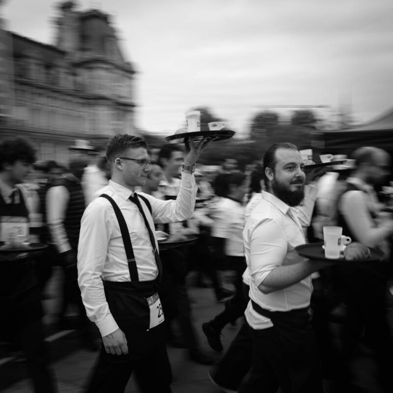 給仕たちがトレーに水のグラス、コーヒー、クロワッサンを載せ、こぼさぬようゴールを目指す―この競走は1914年に始まり、ウェイターの矜持を象徴する催しとして知られた。往時の映像には、モンマルトルの石畳を颯爽と駆け抜けるギャルソンの姿が記録されている。時代の流れとともに一度は姿を消したが、2024年にパリ市主催で復活し、再び都市文化の華として注目を集めている。