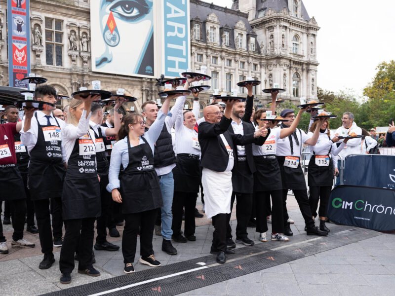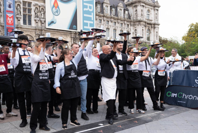 コースはマレ地区からセーヌ川沿いを抜け、市庁舎前に戻る約2km。規則は至ってシンプルだが厳格である。走ってはならず、片手で持ったトレーの上の品をこぼしてもならない。違反すれば失格となり、今年も14名が姿を消した。