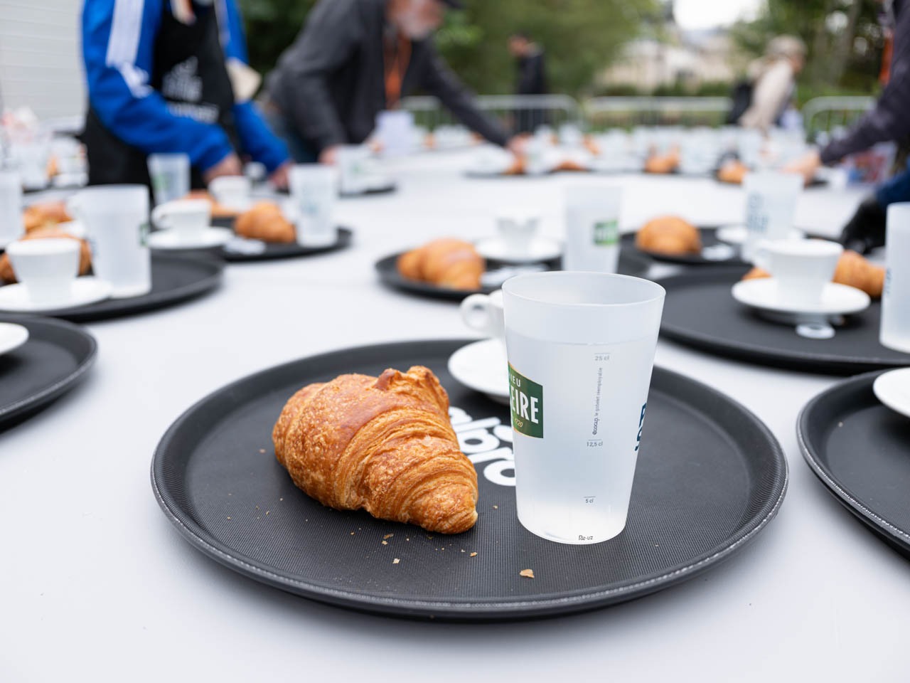 舞台裏を支えるのは数多くのボランティアたち。クロワッサンとカップが整然と並ぶトレーもまた、彼らの献身によって用意された。