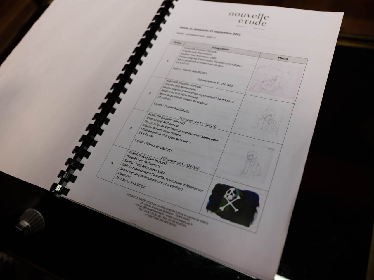 この会場では、日本のアニメーション原画やセル画のオークションが開催されていた。松本零士の『キャプテン・ハーロック』をはじめとする1980年代の作品も並び、フランスにおける日本アニメ文化の根強い人気を映し出している。