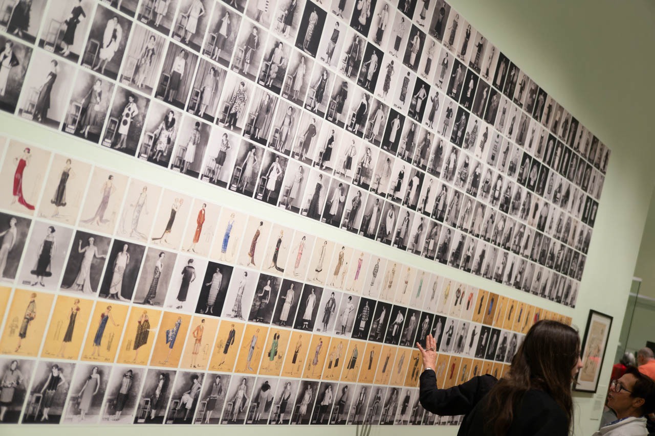 1920年代のジャン=シャルル・ウォースのスタイルを伝える図案と写真は、当時のモードの多様性と美意識を視覚的に記録した貴重な資料である。スポーティで都会的な装いに加え、刺繍やトロンプルイユなどの装飾も随所に見られ、アール・デコとの親和性も際立つ。展示を埋め尽くす図案と写真は、個性と量産性が共存するオートクチュールの本質を物語っている。