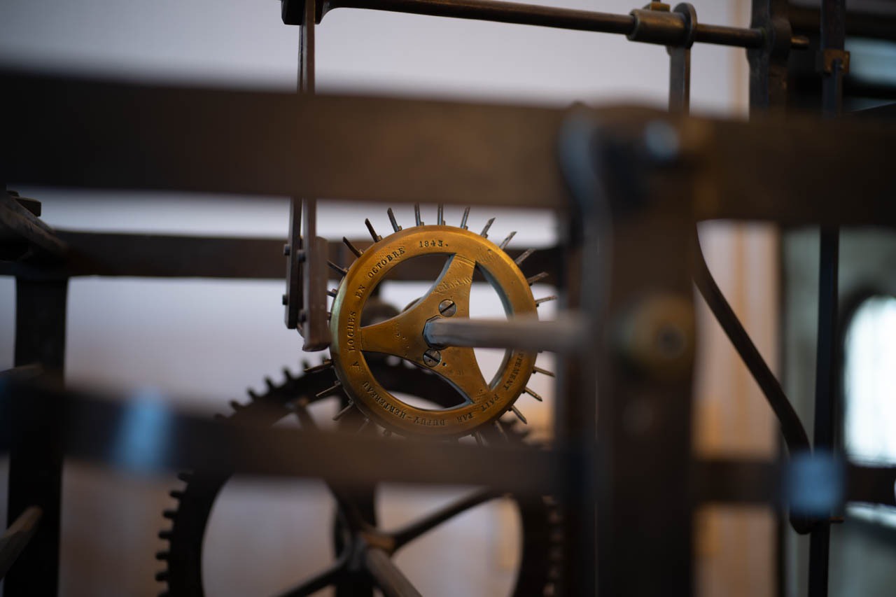 17世紀、近郊のシャルトルーズ修道院で作られた塔時計のメカニズム。 鉄と真鍮、そしてブナの木枠。 1998年に時計師ジル・ヴァソール(Gilles Vassort)の手によって修復されるまで、この巨大な歯車は、祈りの時間を、そして革命後は市民の時間を管理し続けてきた。